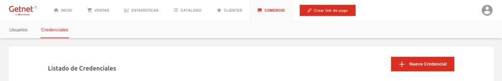 Una vez dentro ingresar en Comercio > Credenciales.