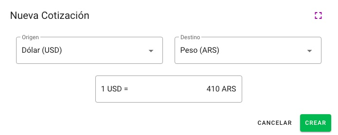 Supongamos que queremos crear una cotización entre Peso y Dolar.