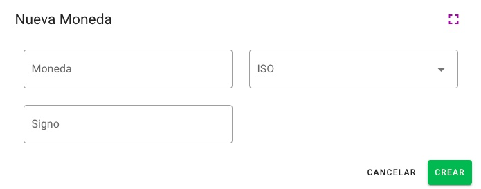 Hacemos click en el botón y seleccionamos Crear Moneda.