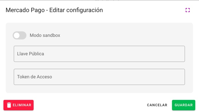 Activamos modo sandbox y pegamos las credenciales en esos campos.