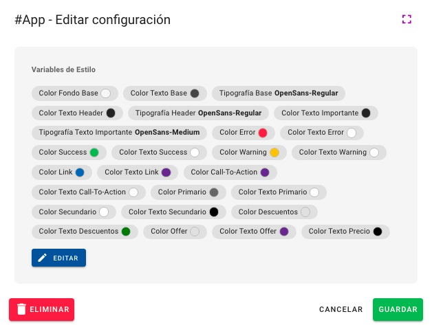 Los colores del Shop se configuran en base a la elección de los siguientes colores de la App.